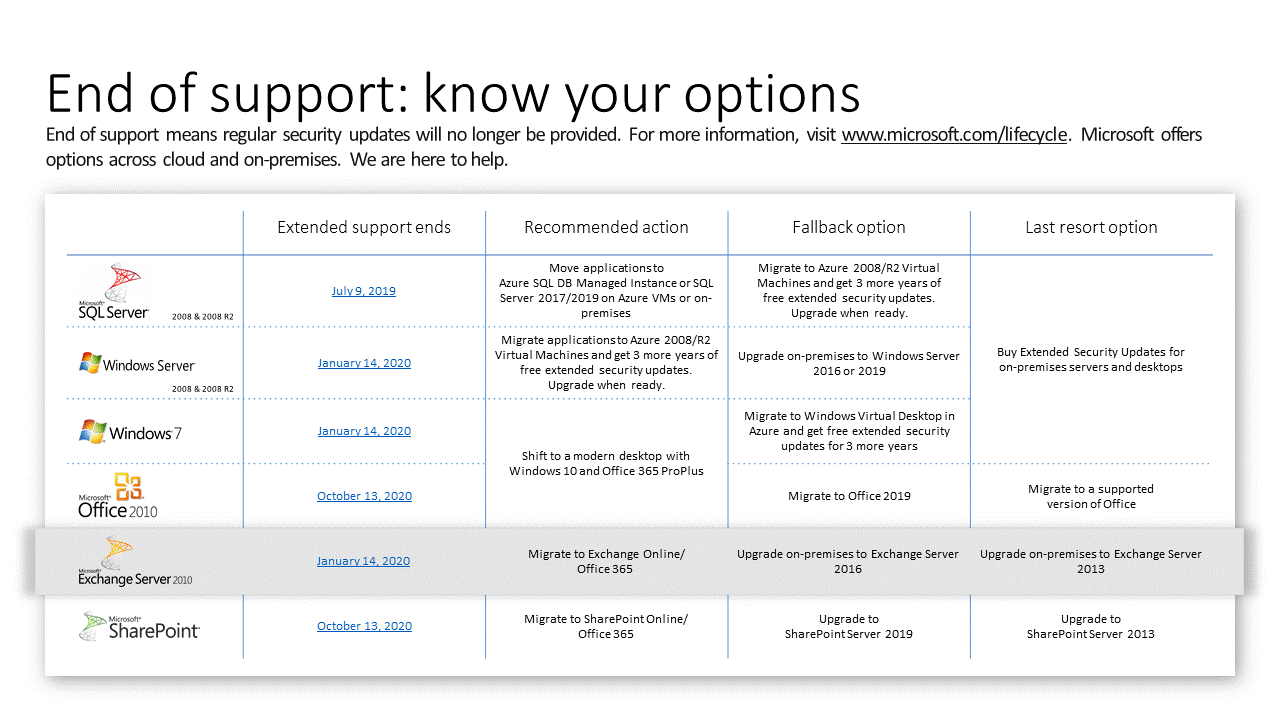 Exchange 2010 end of life support was on January 14 2010 but it changed to October 13 2020. On 13 October 2020 also brings about some considerable changes in Microsoft Office 365 will. Web Its time to stop.